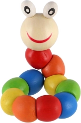 Diese bunte Holzraupe ist ein klassisches Manipulationsspielzeug, das Kinder ganz natürlich zum Trainieren von Feinmotorik, Hand-Auge-Koordination und Kreativität anregt. Die einzelnen Segmente sind mit einem verdeckten Gelenk verbunden, sodass das Spielzeug sanft gebogen, verdreht und in Grundformen gehalten werden kann.