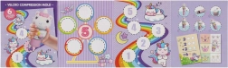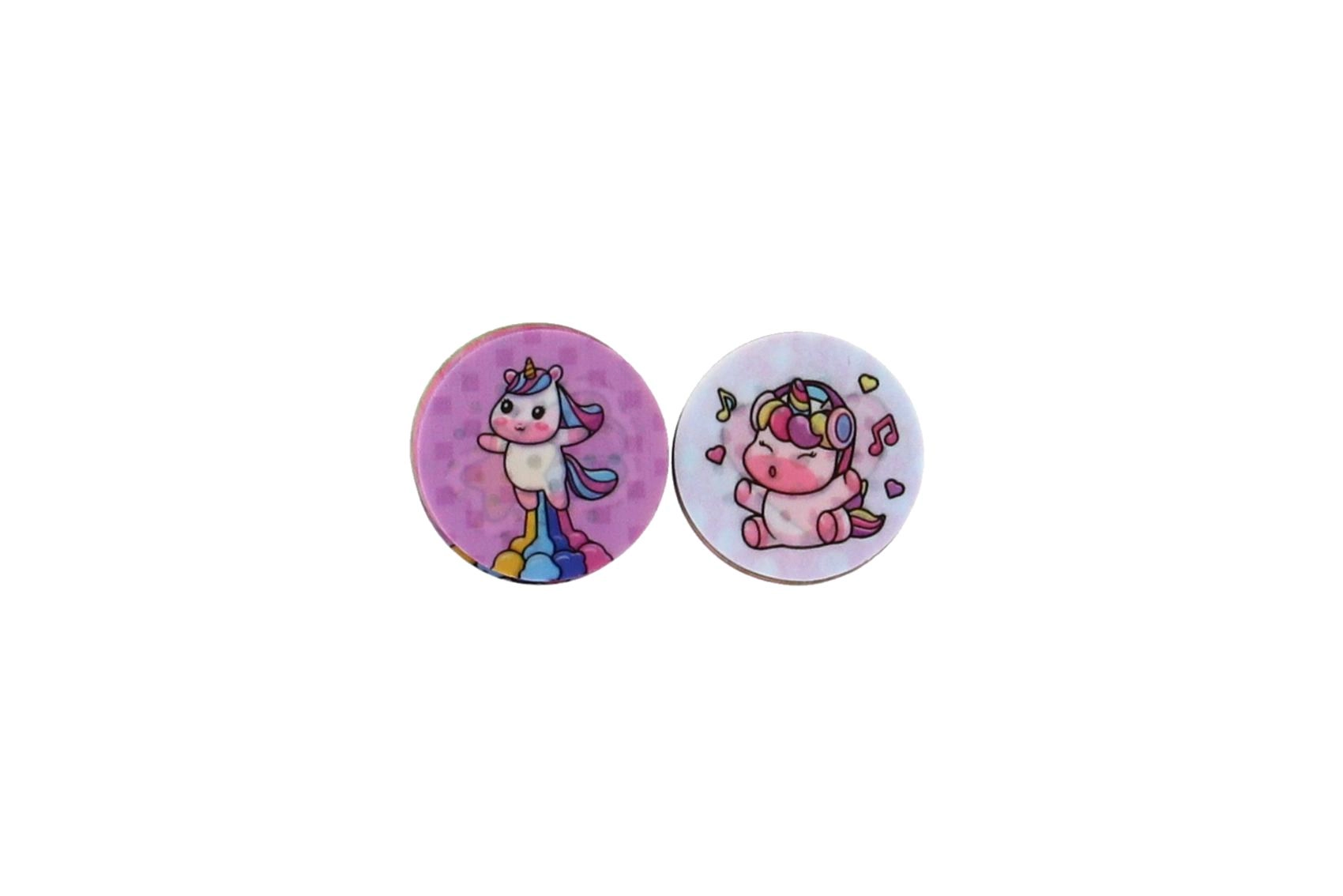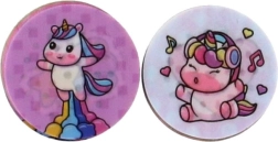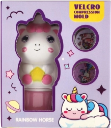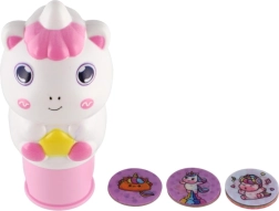 Enthalten sind runde Scheiben mit verschiedenen Einhornmotiven, die sich leicht wechseln lassen, um immer neue Abdrücke zu gestalten.