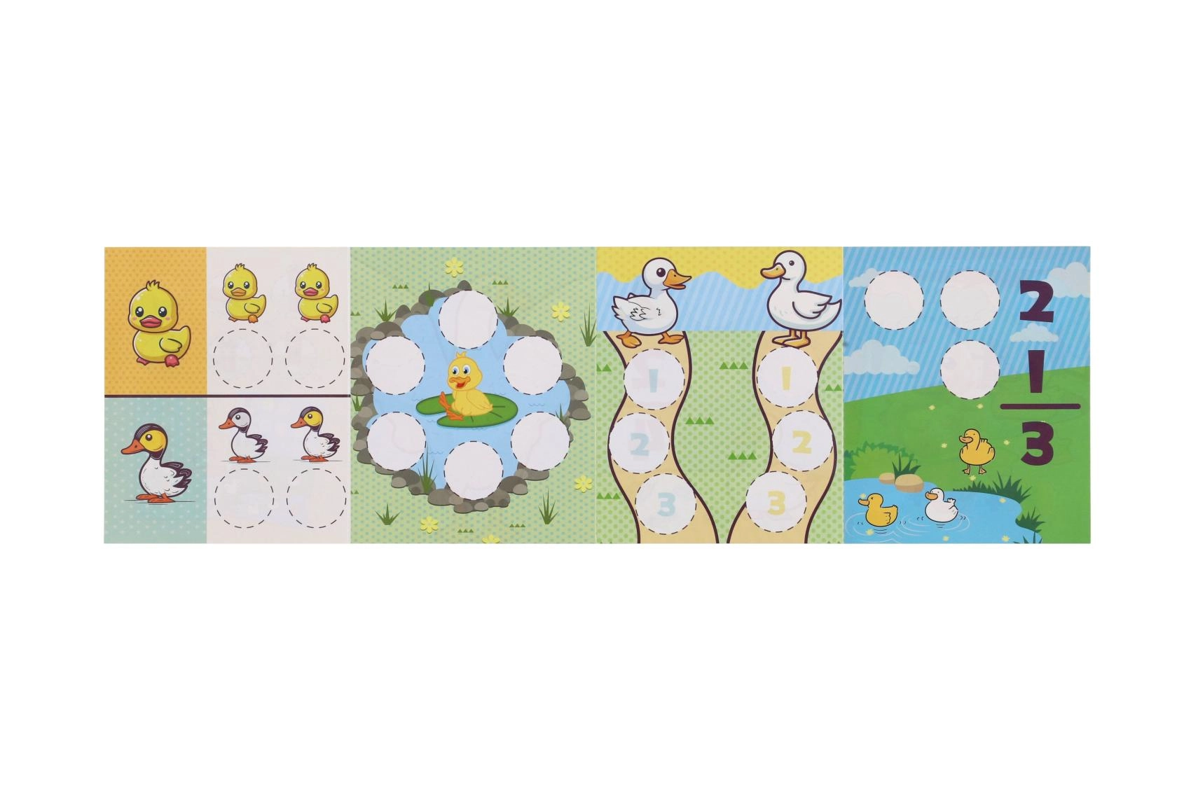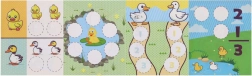 Enthalten sind runde Aufkleber mit Entchenmotiven sowie ein thematischer Bogen zum Bekleben und Verzieren von Projekten.