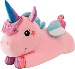 Nach dem Öffnen des Reißverschlusses am Bauch lässt sich die weiche Decke einfach herausnehmen. Pastellfarbene Mähne, Regenbogenhorn und niedliche Stickereien verleihen dem Spielzeug ein märchenhaftes Aussehen, das die Fantasie anregt und das Kinderzimmer gemütlicher macht.