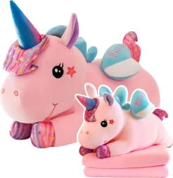 Plüsch-Einhorn mit Decke 3-in-1, rosa, 55 cm