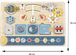 Dank der hochwertigen Holzkonstruktion und der detailreichen Weltraumgrafik ist die Tafel attraktiv und langlebig. Sie eignet sich ideal für das Spielen zu Hause sowie für Kinderecken und hilft, Selbstständigkeit und Geduld nach den Montessori-Prinzipien zu entwickeln.