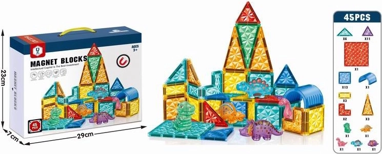 Dieses unterhaltsame und lehrreiche Set magnetischer Konstruktionsbausteine mit Dinosauriermotiv bietet Kindern stundenlangen kreativen Spielspaß. Die Teile haften einfach und sicher aneinander, sodass sich unterschiedlichste Formen, Figuren und prähistorische Szenen bauen lassen. Dank der robusten Ausführung eignet sich die Baukiste hervorragend für den täglichen Einsatz zu Hause und im Kindergarten.