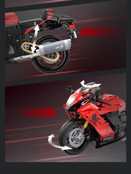 Der Bau aus 1043 kompatiblen Teilen (kompatibel mit weiteren CaDA‑Sets) fördert Geduld, Vorstellungskraft und Feinmotorik. Dank stabiler Verbindungen eignet sich das Modell sowohl zum Spielen als auch Ausstellen – die transparente Motorabdeckung ermöglicht den Blick auf die beweglichen Kolben, die mit dem Hinterrad gekoppelt sind.