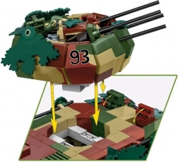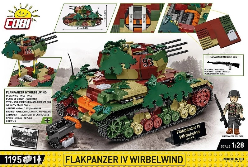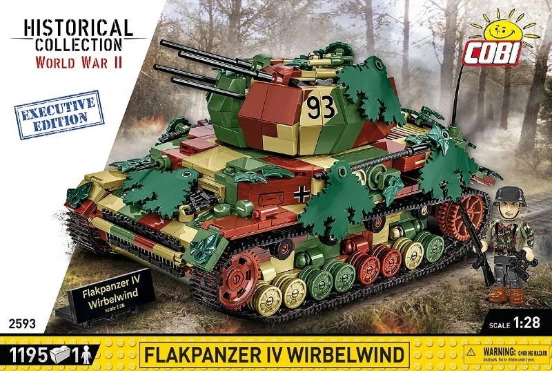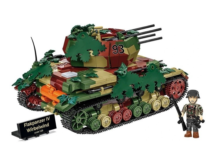 Der Flakpanzer IV Wirbelwind war ein deutscher, selbstfahrender Flugabwehrpanzer aus der Endphase des Zweiten Weltkriegs. Er war mit der vierläufigen 2-cm-Flakvierling 38 auf dem Fahrgestell des PzKpfw IV ausgerüstet. Dieser Bausatz bildet seinen charakteristischen offenen Turm, die schnellfeuernde Bewaffnung und das authentische Spätkriegs-Tarnmuster mit Laubwerk originalgetreu nach – für einen beeindruckenden Auftritt im Regal wie auch beim Spielen.
