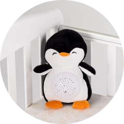 Der niedliche Plüsch-Pinguin CHIPOLINO verwandelt das Einschlafen am Abend in ein zauberhaftes Ritual. Er bietet eine Sternenprojektion, sanfte Schlafmelodien und ein weiches, kuscheliges Design. Dank der herausnehmbaren Musikeinheit lässt sich der Plüsch leicht reinigen, der Betrieb erfolgt über 3× AAA-Batterien.