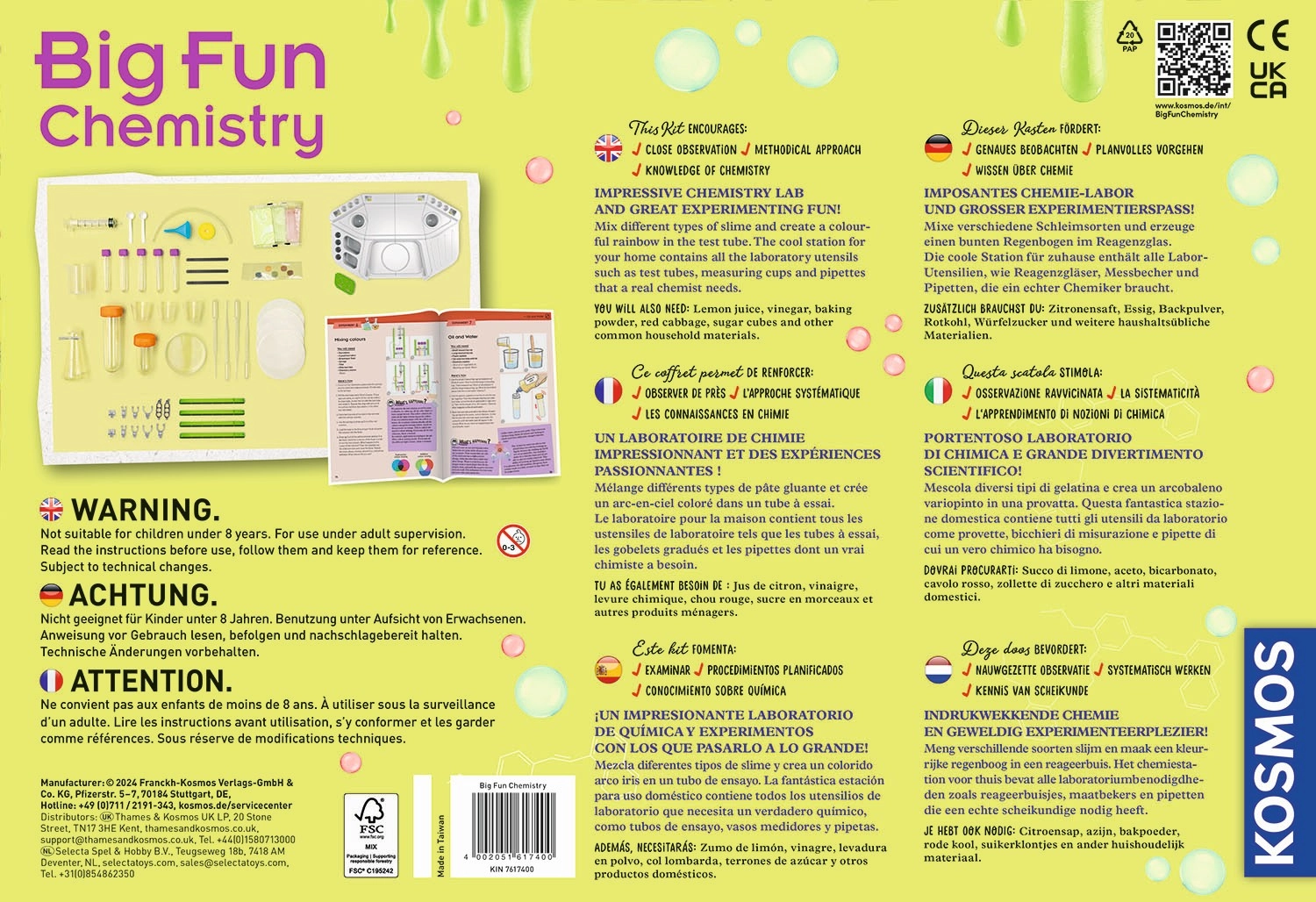 Betreten Sie die Welt der Wissenschaft mit einem sicheren und clever gestalteten Chemielabor für Kinder. Das KOSMOS-Set ermöglicht jungen Forschenden einfache und fesselnde Experimente, fördert logisches Denken und Neugier. Dank der beiliegenden digitalen tschechischen Anleitung sind Vorbereitung und Ablauf der Experimente übersichtlich und verständlich.