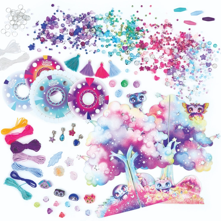 Gestalte deine eigenen, einzigartigen Armbänder und Halsketten mit dem magischen Nebulous Stars Set. Enthalten ist auch der dekorative Sternenbaum zum Ausstellen der fertigen Schmuckstücke, über 2000 Perlen, bunte Schnüre und Anhänger für endlose Kreativität. Ideal als Geschenk für kleine Kreative, die Perlenarbeiten und Fantasie lieben.