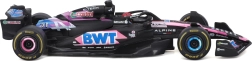 Dieses offiziell lizenzierte Modell des Alpine F1 Team A524 (2024) von Bburago im Maßstab 1:43 bietet eine herausragende Kombination aus Verarbeitung und Authentizität. Schwarze Basis mit rosa‑blauen BWT-Akzenten, feine Sponsorendrucke und aerodynamische Elemente einschließlich Frontflügel, Halo und Heckflügel treffen den realen Monoposto von Esteban Ocon exakt.