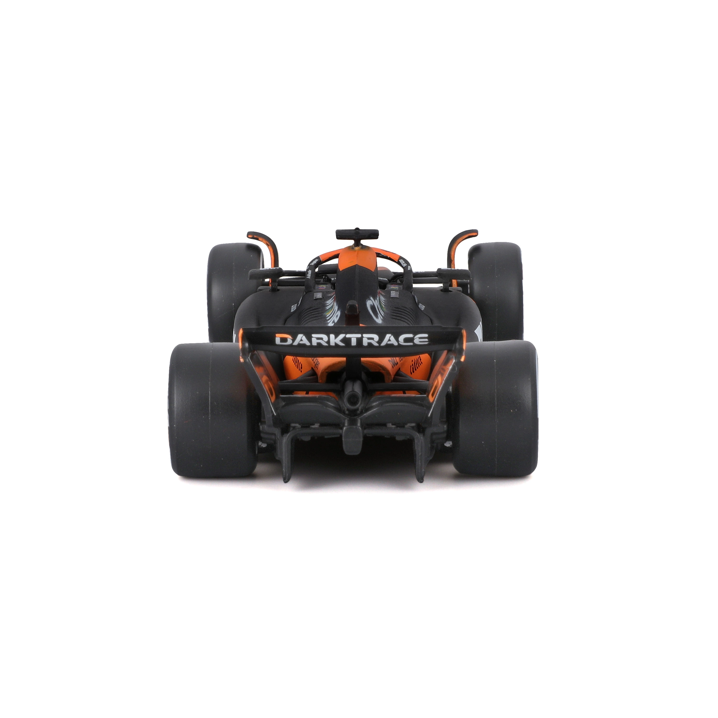 Die ikonische Kombination aus Orange und Schwarz mit Teamlogos und Rennslick-Reifen begeistert jeden F1-Fan.