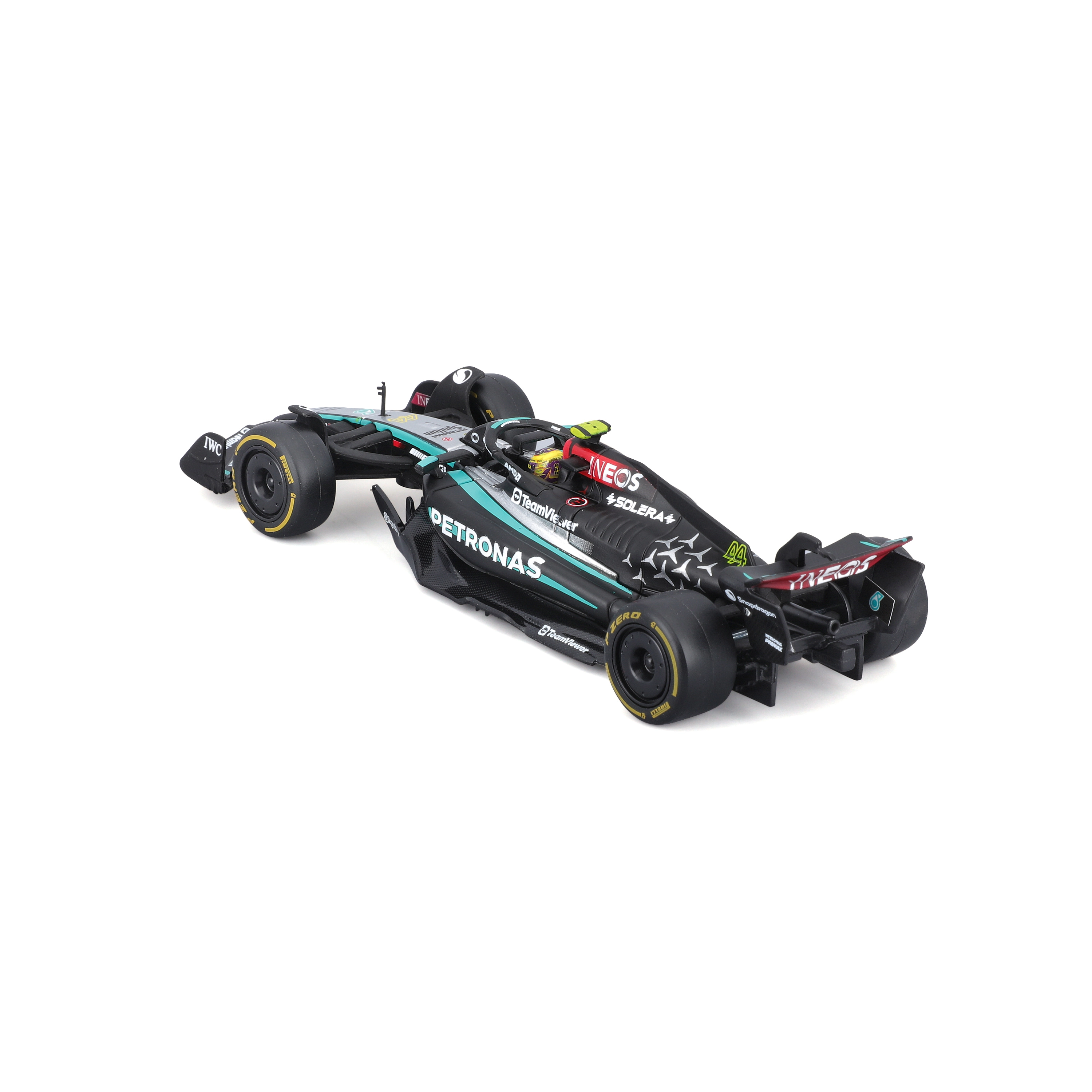 Pirelli Slick-Reifen, Halo, Flügel und frei drehbare Räder für einfaches Arrangieren.