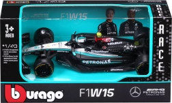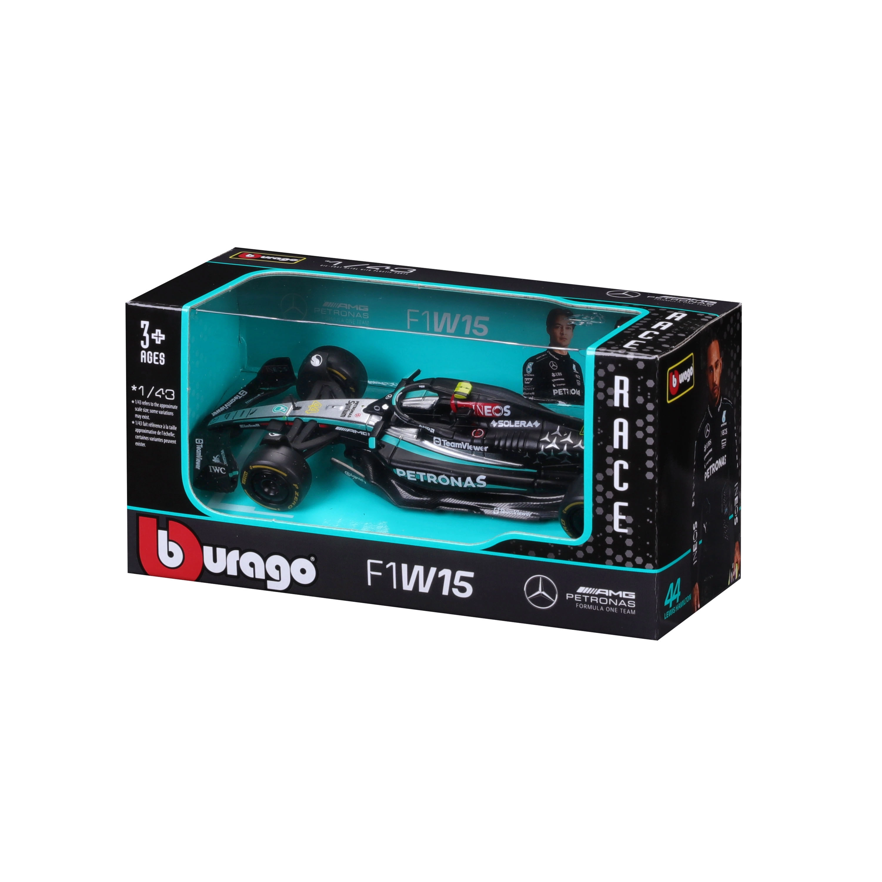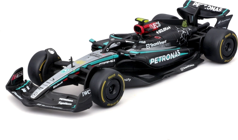 Entdecken Sie die präzise Miniatur des Rennboliden des Mercedes‑AMG Petronas F1 Team in der Edition W15 Performance (2024). Das Modell von Bburago fängt aerodynamische Formen, Sponsorenlogos und das ikonische schwarz‑türkise Design originalgetreu ein. Ideal für die Sammlung, das Büro oder das Kinderzimmer aller Liebhaber der Geschwindigkeit.