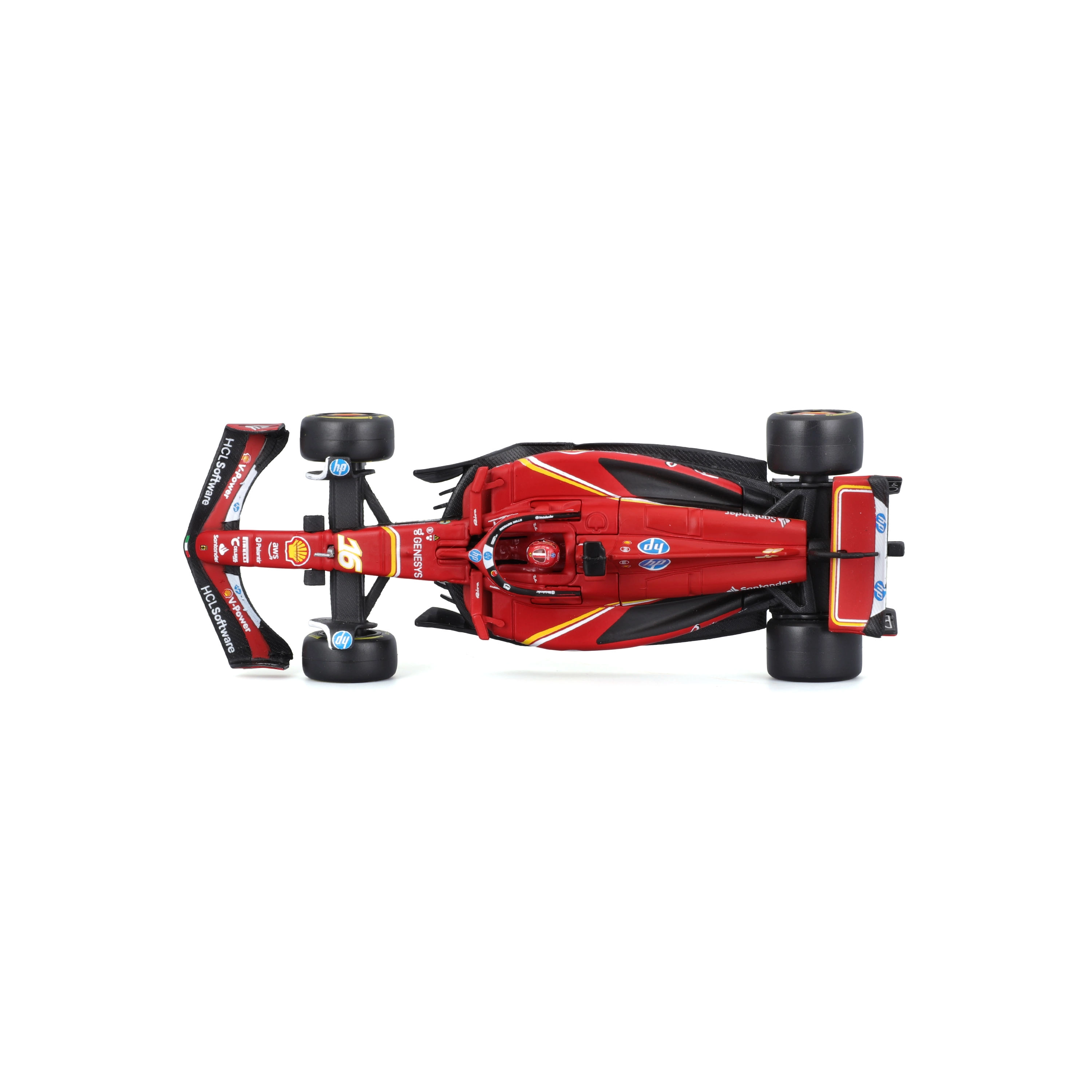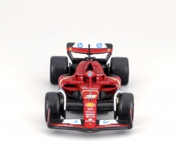 Dieses offiziell lizenzierte Modell Ferrari SF-24 (2024) von Bburago reproduziert die Formen des Monoposto originalgetreu, einschließlich Front- und Heckflügel, Halo und dem Rennlack mit Sponsorenlogos. Der Maßstab 1:43 ist ideal für Sammlerserien und eine kompakte Präsentation.