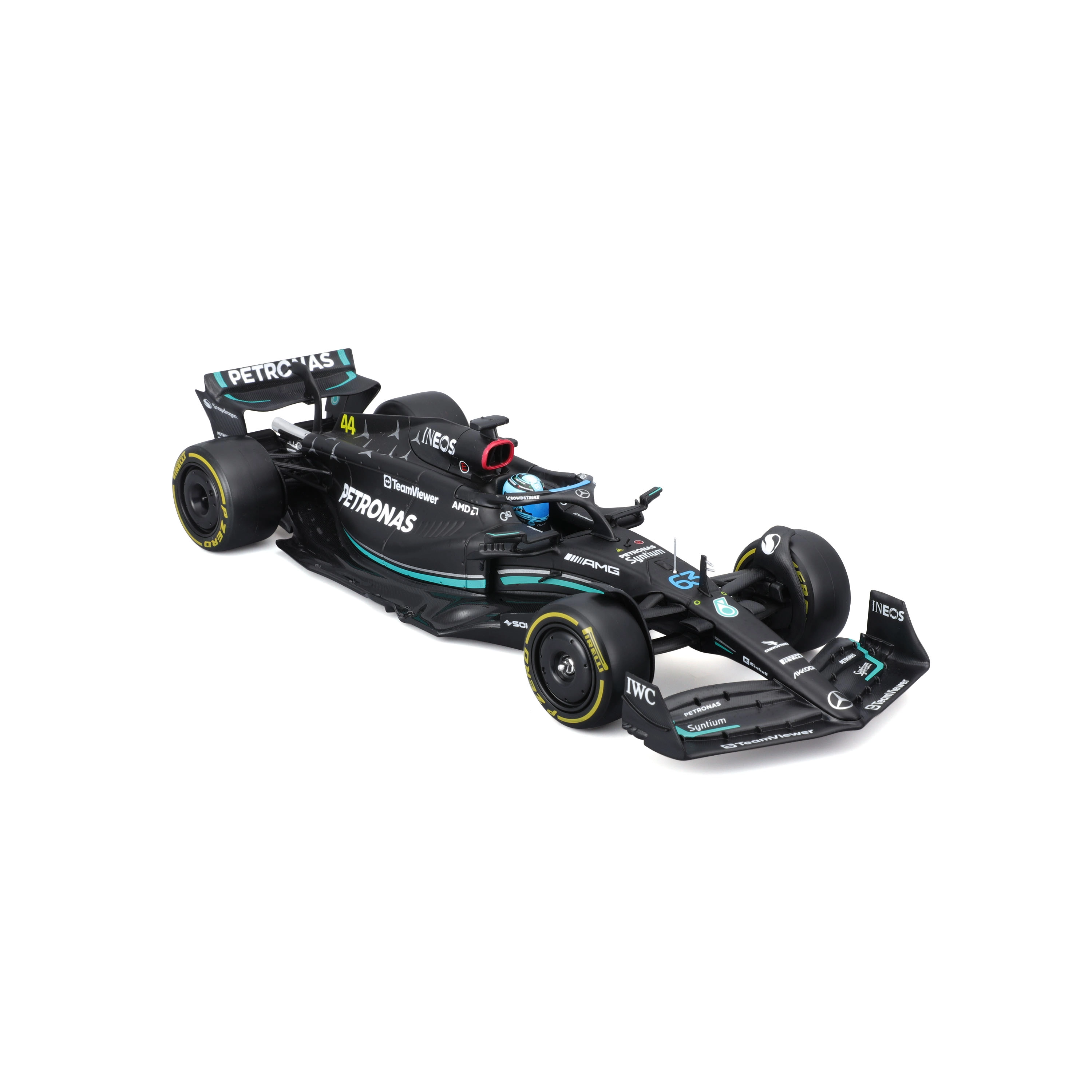 Dieses detailreiche Modell des Rennwagens MERCEDES-AMG PETRONAS Formula One verbindet hochwertige Die-Cast-Verarbeitung mit Bauspaß. Dank exakter Proportionen, realistischer aerodynamischer Elemente und originalgetreuer Sponsorenlogos erhalten Sie ein attraktives Ausstellungsstück für die Vitrine.
