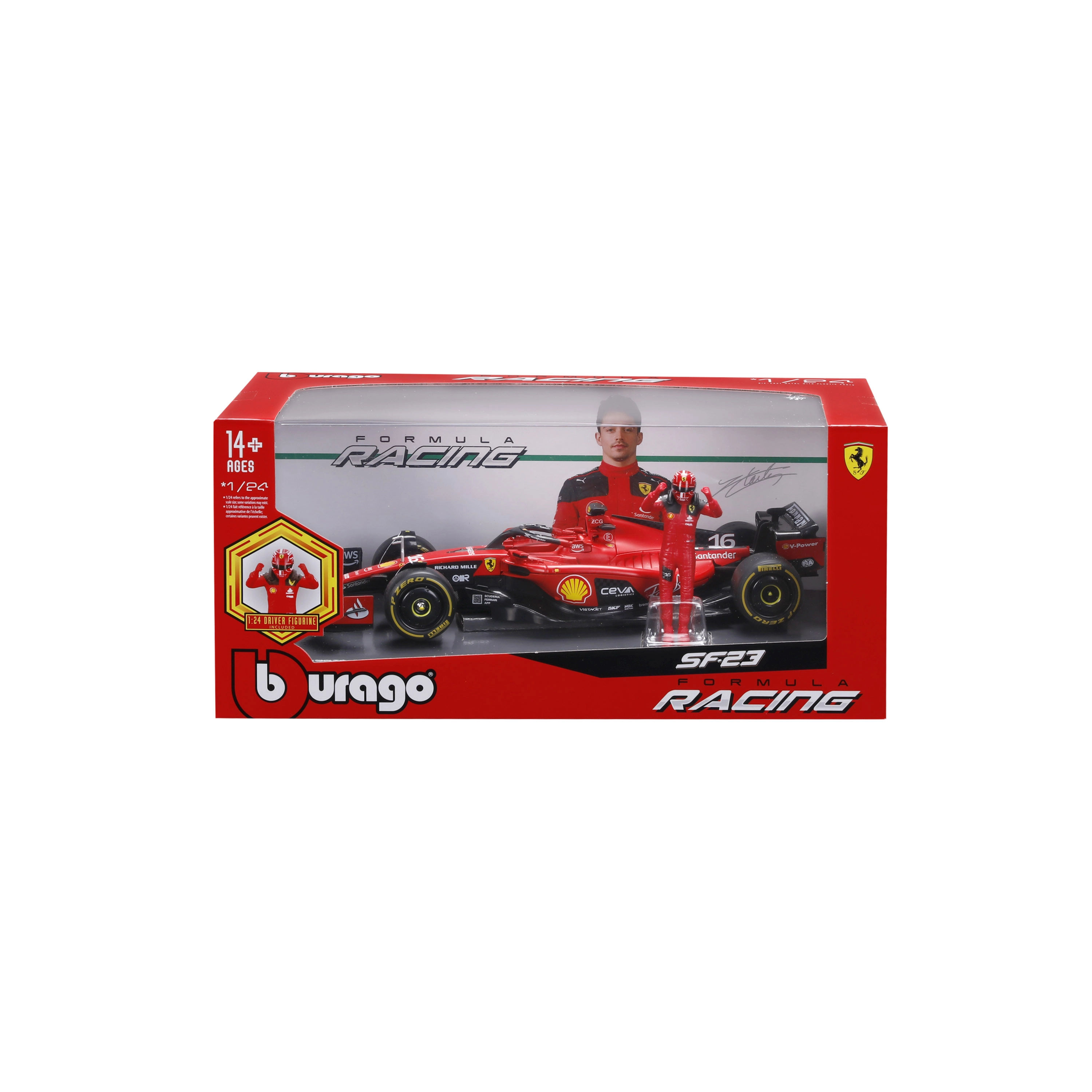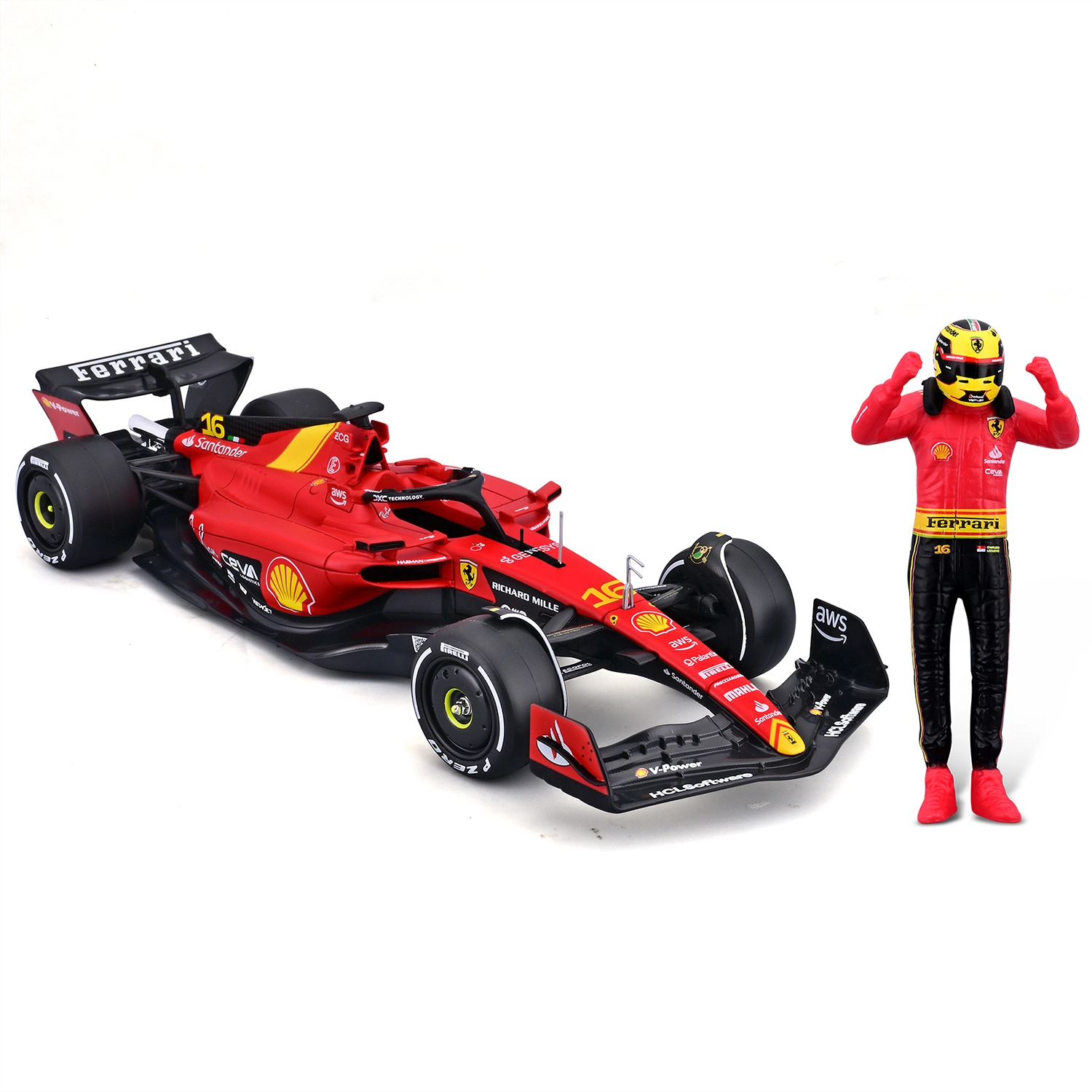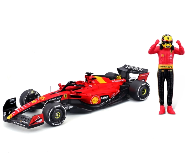 Im Lieferumfang enthalten ist eine stilvolle Pilotenfigur, die farblich auf den Monoposto abgestimmt ist – ideal für dynamische Display-Arrangements.