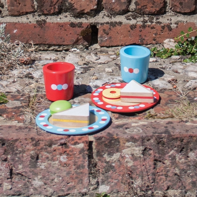 Dieses zauberhafte Teeservice aus Holz mit Punkten lädt zum gemeinsamen „Fünf-Uhr-Tee“ ein. Kinder üben Servieren, Höflichkeit und das Teilen und trainieren dabei Griff und Handkoordination. Farbige Details und durchdachte Maße machen es zu einem beliebten Zubehör für jede Spielküche.