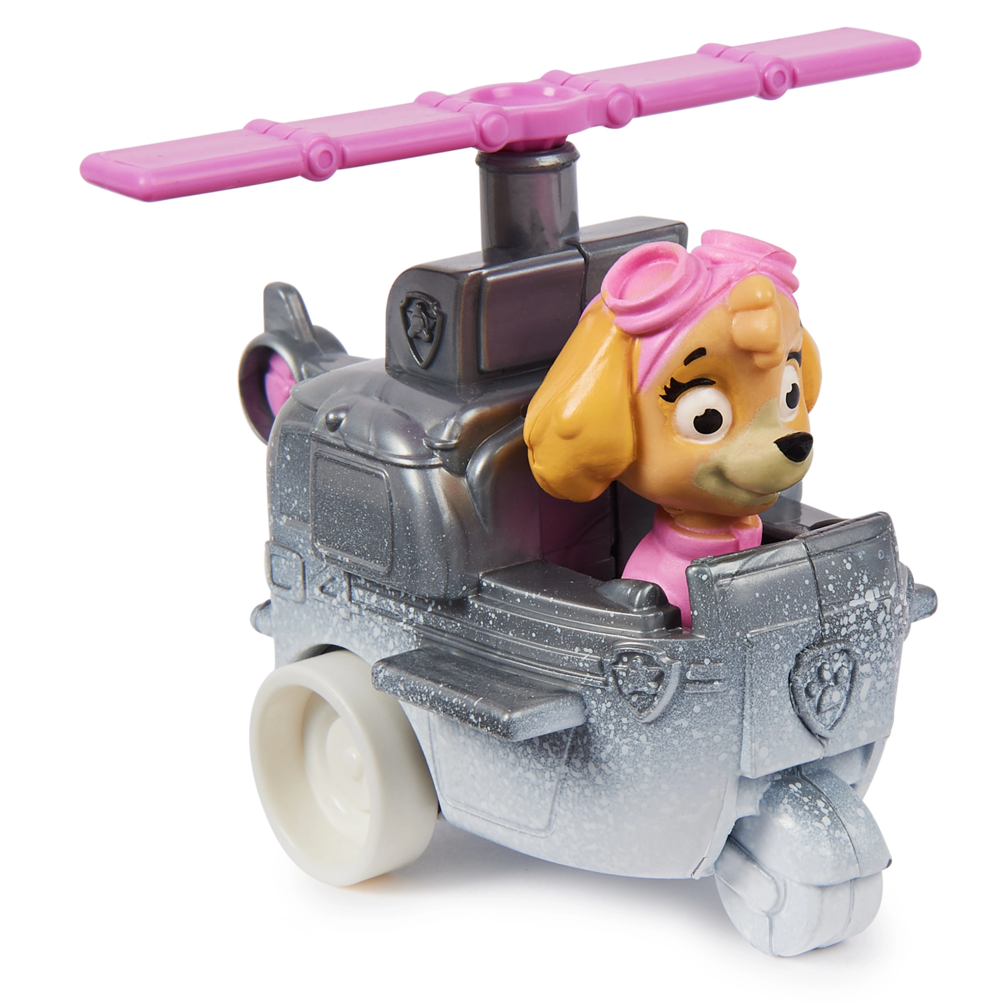 Gehe mit Skye in ihrem ikonischen silber-pinken Schnee-Helikopter auf Rettungseinsatz. Details mit „Schnee“-Effekt verleihen dem Fahrzeug eine winterliche Atmosphäre und beflügeln die Fantasie der Kinder. Dank der robusten Ausführung und der Größe von 8 cm ist er ideal für unterwegs und fürs Kinderzimmer.