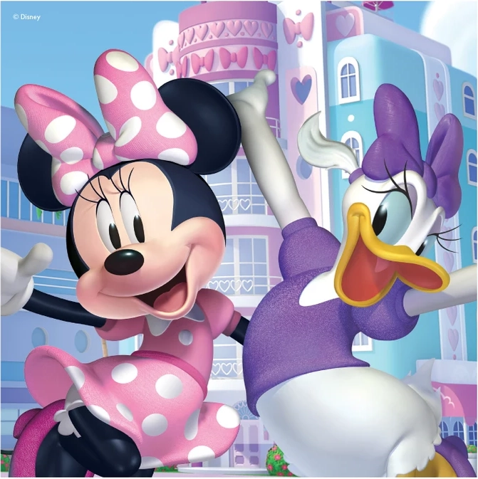 Diese Kollektion enthält drei einzelne Puzzles mit den beliebten Figuren Minnie und Daisy. Dank des kleineren Formats lässt sich das Puzzle leicht am Tisch oder unterwegs legen und eignet sich hervorragend als Geschenk für Vorschulkinder und Grundschulkinder.
