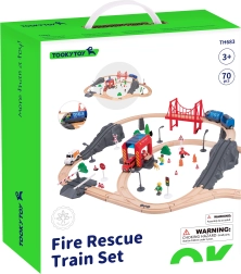 Holzeisenbahn-Set Feuerwehr und Ambulanz, 70 Teile – TOOKY TOY