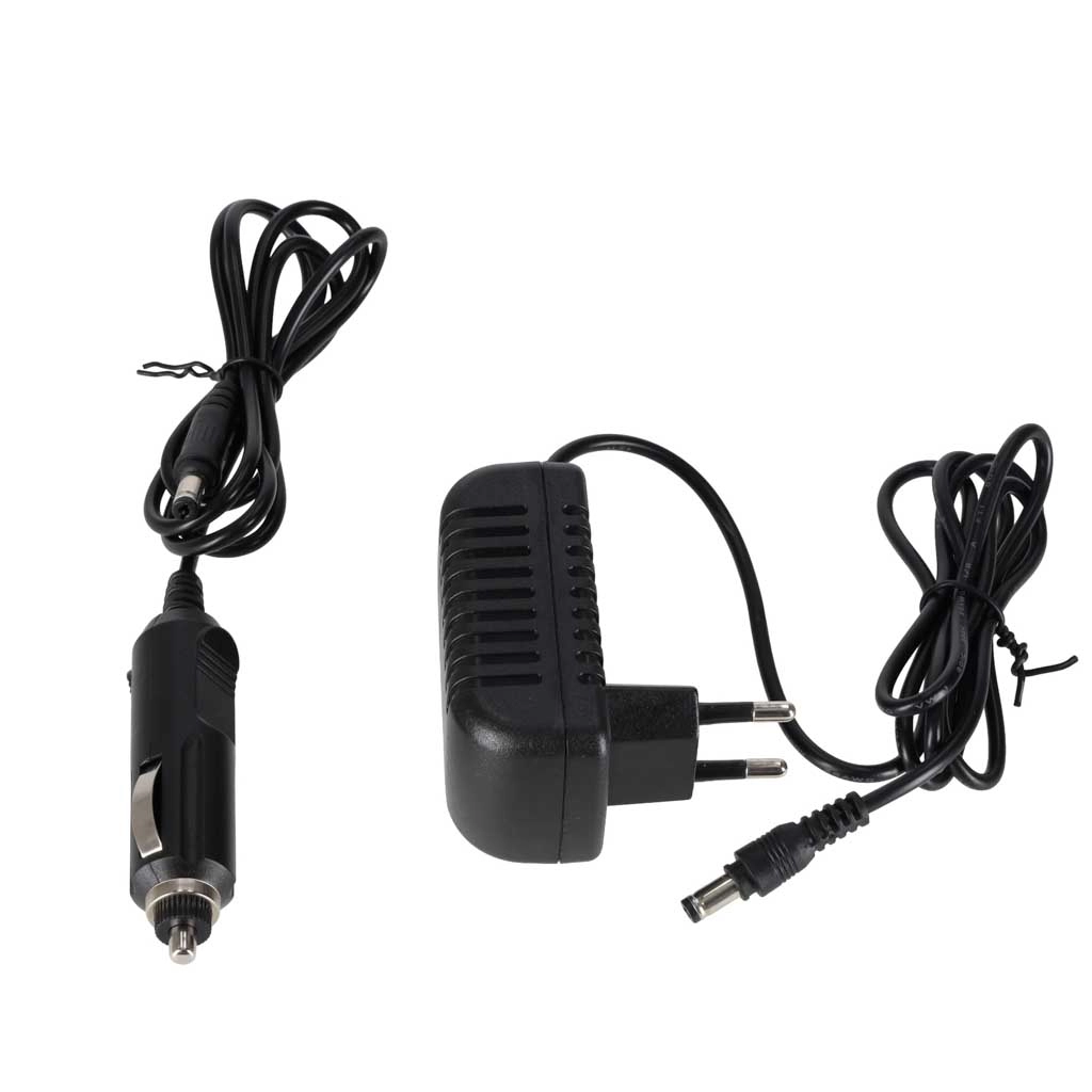 Stromversorgung aus der Steckdose und über Zigarettenanzünder