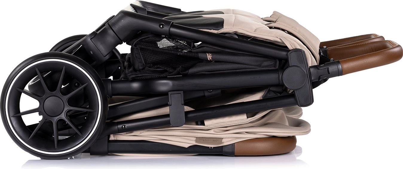 Der Kinderwagen lässt sich im Handumdrehen zu einer leicht tragbaren Form zusammenklappen – ideal für Autofahrten und den öffentlichen Nahverkehr.