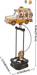 Der Road Tripper ist ein durchdachtes mechanisches Modell aus naturbelassenem Sperrholz, das nach dem Zusammenbau dank des beschwerten Pendels und der Zahnräder im Sockel zum Leben erwacht. Das von Retro-Offroadern inspirierte Fahrzeug besticht durch Details – ein Fahrer mit Kaffee, ein treuer Hund auf Reisen, Surfbrett und Koffer auf dem Dach sowie Ballons, die die Abenteuerstimmung abrunden.
