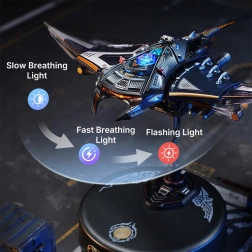 Das RoboTime 3D mechanische Puzzle Mantarochen bringt eine beeindruckende Kombination aus Technik und natürlicher Anmut in Ihr Interieur. Das realistische Pfeilmuster und die sanften Flossenbewegungen vermitteln die schwerelose Eleganz eines echten Mantarochen. Nach dem Drücken der Taste beginnen die Brustflossen zu schwingen, der Schwanz wiegt sich sanft und die LED-Lichter leuchten synchron auf.