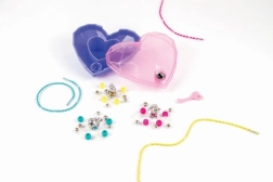 1 Disney-Anhänger, 1 geflochtene Schnur, 11 Perlen, Herzbox, Schlüssel, 40-seitiges Heft, Anleitung