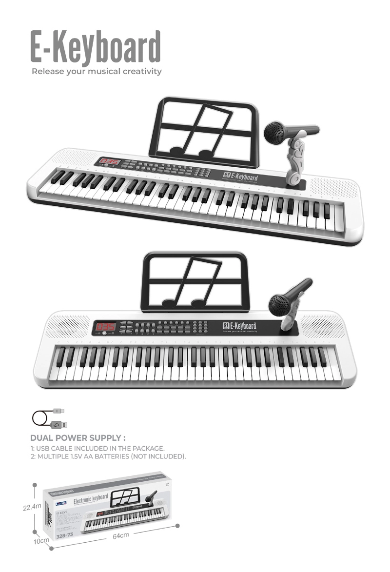 Die Tastatur mit 61 Tasten ermöglicht das Spielen eines breiten Repertoires, von einfachen Melodien bis hin zu komplexeren Arrangements. Dank der übersichtlichen Anordnung eignet sich das Instrument für Kinder, Schüler und erwachsene Anfänger.
