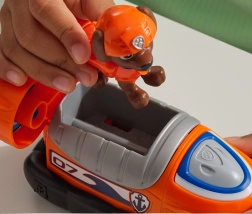 Gehe auf Wasserrettungsmissionen mit dem Welpen Zuma, dem Wasserretter aus PAW PATROL. Das stylische orange-graue Hovercraft mit beweglichen Rädern ermöglicht ein sanftes Gleiten über den Boden, und die detailgetreue Zuma-Figur in orangener Ausrüstung und Helm bereitet Kinder auf stundenlanges kreatives Spiel vor.