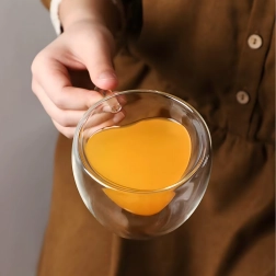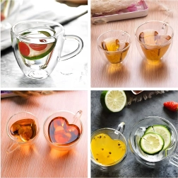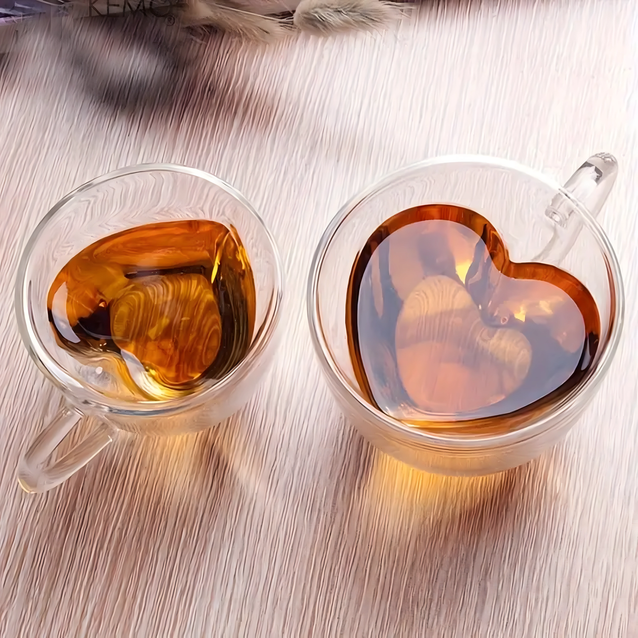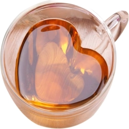 Bringen Sie eine Prise Romantik in den Alltag. Der transparente Becher mit herzförmiger Innenkammer betont die Farbe des Getränks und sorgt für stilvolles Servieren. Die Doppelwand reduziert Kondensation bei Kaltgetränken und schützt die Hände vor Hitze bei Kaffee und Tee.