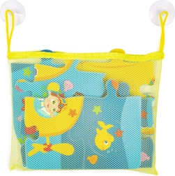 Der Netz-Organizer hält die Spielzeuge zusammen, lässt sie schnell trocknen und haftet dank zwei Saugnäpfen auf glatten Fliesen.