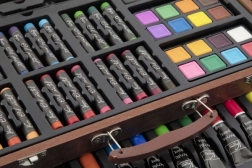 Komplettes Kunstset in einem eleganten Holzköfferchen für Einsteiger und Fortgeschrittene. Enthält eine große Auswahl an Zeichen- und Malutensilien, um Ihre Ideen zum Leben zu erwecken. Darin finden Sie Acrylfarben, Aquarellfarben, Trockenkreiden und Ölpastelle, Bunt- und Graphitstifte, Pinsel und weiteres Zubehör – alles übersichtlich organisiert und leicht zu transportieren.