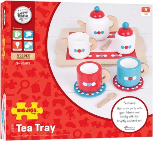 Das Spielen einer Teestunde fördert Kommunikation, Zusammenarbeit und Fantasie. Kinder üben Griff, Präzision und Bewegungskoordination, während sie eigene Geschichten und Rituale erschaffen. Das elegante Punktedesign in Rot, Blau und Weiß belebt jede Spielecke.