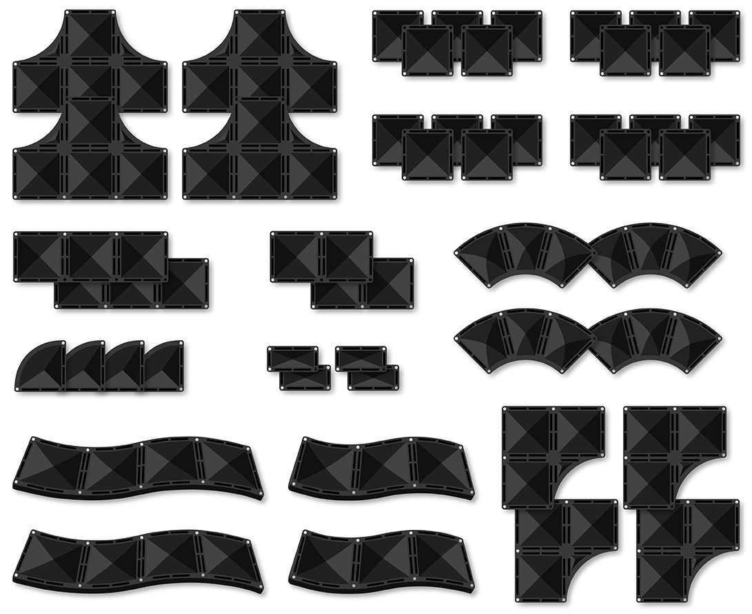 Kombinieren Sie Rampen, Kurven, T-Stücke und Kreuzungen zu beliebigen Layouts. Die magnetische Verbindung ist dank des zufriedenstellenden „Klicks“ schnell, stabil und macht Spaß.