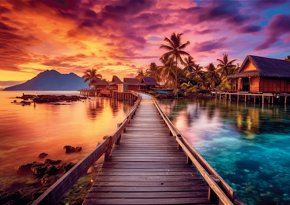 Entdecken Sie den Zauber eines ruhigen Abends am Meer mit dem Puzzle „Sonnenuntergang über dem Paradies“ von TREFL. Dank 1000 präzise gefertigter Teile genießen Sie einen flüssigen Puzzlevorgang und perfekte Passgenauigkeit. Das beiliegende Poster hilft Ihnen bei der Orientierung im Motiv und beschleunigt den gesamten Prozess.