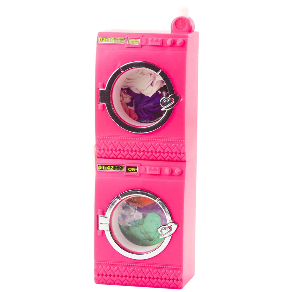 Rosa Waschküche für Puppen – Waschmaschine, Trockner, Kleiderständer und Korb