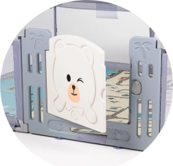 Der Laufstall CHIPOLINO Amico ist eine hervorragende Lösung für sicheres Spielen von Babys und Kleinkindern im Innenbereich. Dank der transparenten Netzpaneele haben Sie Ihr Kind stets im Blick, während es genügend frische Luft und Platz zum Entdecken hat. Die vordere Tür mit Sicherheitsverschluss erleichtert älteren Kleinkindern den Ein- und Ausstieg, ohne die Konstruktion demontieren zu müssen.