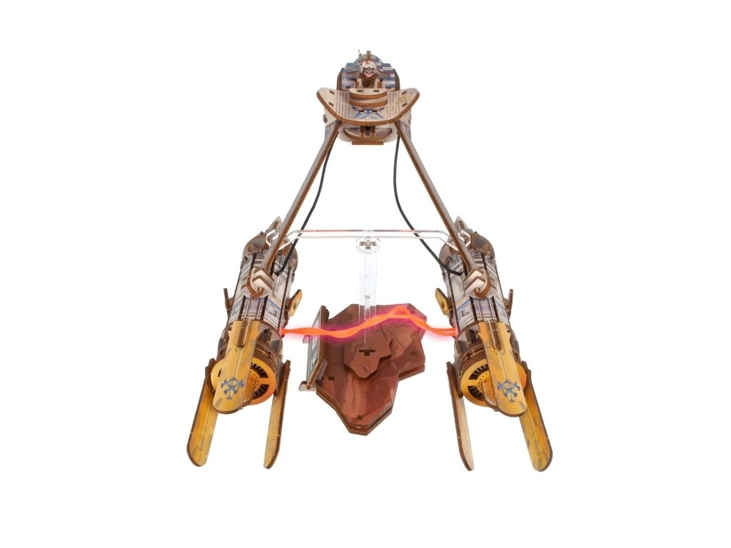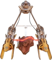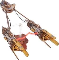 Bauen Sie den ikonischen Podracer von Anakin Skywalker aus dem Star Wars-Universum und präsentieren Sie ihn auf einem eleganten Standfuß mit Flugeffekt. Das Modell aus farbigem Sperrholz bietet einen LED-Plasma-Bogen zwischen den Triebwerken, ein öffnendes Cockpit mit Figur und eine seitliche Bewegung zur Flugsimulation. Die Montage erfolgt ohne Klebstoff und Werkzeuge – ideal für Sammler und Modellfans.