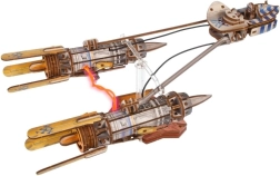 Dieses detailreiche Modell des Anakin-Podracers ist für ein authentisches Bau- und Ausstellungserlebnis konzipiert. Zwei mächtige Triebwerke sind durch einen LED-Plasmabogen verbunden (Batteriebetrieb, nicht enthalten), während der magnetische Acrylarm des Standfußes das Modell sanft von Seite zu Seite schwingen lässt und so den Flug realistisch imitiert. Im Cockpit finden Sie eine Anakin-Figur, außerdem gibt es seitlich öffnende Türen.