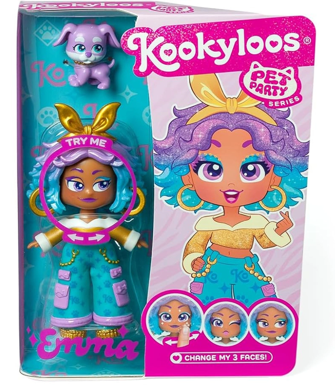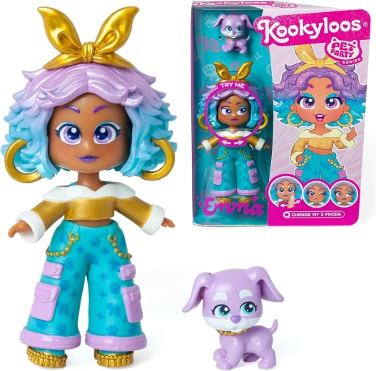 Niedliche Sammelfigur KookyLoos Emma aus der Serie Pet Party vereint die Liebe zu Tieren mit modischem Stil und austauschbarem Design. Enthalten sind ihr Hündchen, stylische Accessoires und 3 Gesichtsausdrücke durch Drehen des Kopfes – für mehr Spaß und Kreativität beim Spielen und Sammeln.
