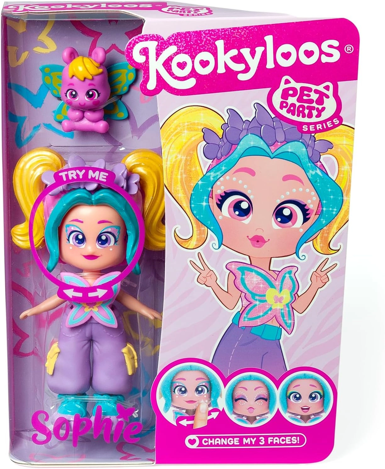 Die Puppe KOOKYLOOS Pet Party Sophie verbindet Modebewusstsein, eine starke Persönlichkeit und die Liebe zu Tieren. Im Set finden Sie die Puppe mit stylischer Kleidung, charakteristischer Frisur und Accessoires im Party-Thema. Ebenfalls enthalten ist ein süßer Schmetterling, der die Spielmöglichkeiten und eigene Geschichten erweitert.