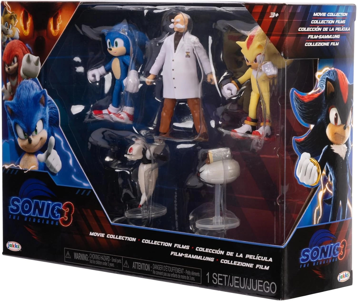 Dieses stylische Multipack bringt die Spannung und den Humor von SONIC THE HEDGEHOG 3 direkt in Ihr Zimmer. Das Set enthält den blauen Sonic, den gelben Super Sonic, den Wissenschaftler Dr. Robotnik sowie zwei Action-Zubehörteile – Buzz Bomber und eine Drohne auf Ständern für eine stabile Präsentation.
