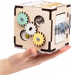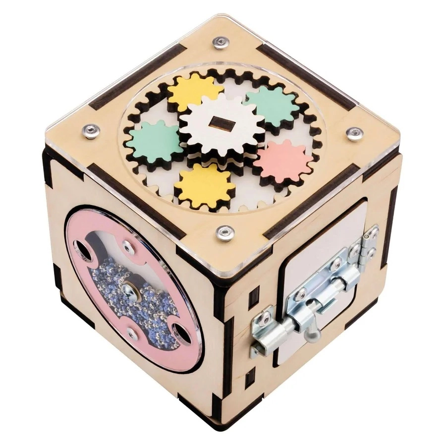 Dieser Montessori-Würfel besteht aus hochwertigem Birkensperrholz und ist mit sicheren, wasserbasierten Farben behandelt. Abgerundete Kanten, eine stabile Konstruktion und durchdachte mechanische Elemente fördern die Hand-Auge-Koordination, Geduld und Neugier. Dank der kompakten Maße von 11 × 11 × 11 cm kann das Kind ihn überallhin mitnehmen.