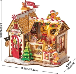 Dieses detailreich gestaltete 3D-Holzpuzzle eines Lebkuchenhäuschens bringt festliche Stimmung in jedes Zuhause. Ein mattes Dach mit Zuckerstangen, eine rote Tür, Auslagen voller Leckereien und das gemütliche warmweiße LED-Licht ergeben eine einzigartige Miniatur – ideal fürs Regal oder Fenster. Der Aufbau erfordert weder Klebstoff noch Werkzeuge – die Teile greifen passgenau ineinander und das fertige Modell ist stabil.