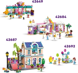 Bauen Sie Ihren eigenen Supermarkt und spielen Sie Einkaufen mit den Kindern dank des LEGO Friends Sets. Der Laden bietet realistische Elemente wie Kasse, Regale mit Produkten und Auslagen, sodass Kinder ein authentisches Spielerlebnis genießen. Die App LEGO Builder ermöglicht es, den Bau in 3D zu verfolgen, das Modell zu drehen und Schritt für Schritt vorzugehen.