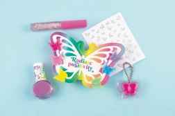 Das Kosmetikset Butterfly Dreams bringt Zauber und Spaß in Ihre Beauty-Routine. Dieses Produkt ist perfekt für alle Mädchen, die wie Schmetterlingsprinzessinnen aussehen möchten. Das Set enthält verschiedene Accessoires und Produkte: