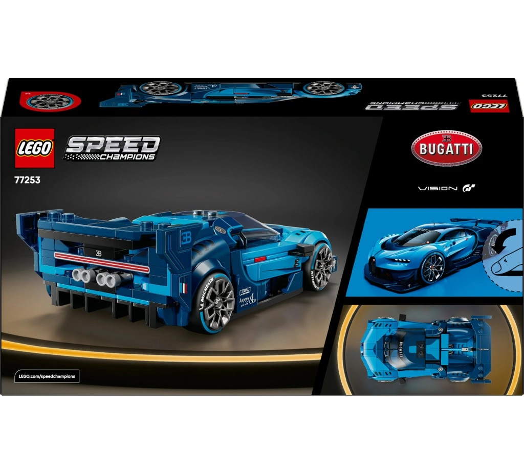 Erlebe Adrenalin pur mit dem BUGATTI Vision GT, der mit seiner präzisen Karosserieform, dem vorderen hufeisenförmigen Kühlergrill mit der Nummer 16, acht Scheinwerfern, einer Dachfinne und dem markanten Heckflügel begeistert. Breite Reifen mit Aufdruck verleihen dem Auto einen realistischen Rennlook, und die Rennfahrer-Minifigur im Outfit mit BUGATTI-Logo passt bequem ins Cockpit.