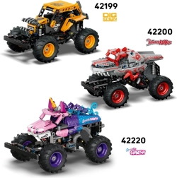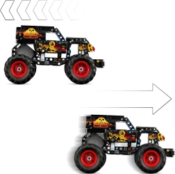 Dieses Modell aus der LEGO Technic Reihe fängt die Atmosphäre der Monster Jam Arena originalgetreu ein. Eine Seite des Fahrzeugs glänzt mit feurigen Motiven und roten Felgen, die andere ist in eisigem Blau mit blauen Rädern gehalten. Dank des Aufziehmotors genügt ein Zurückziehen, und der Truck schießt nach vorn für Sprünge, Drifts und coole Tricks – und das alles ganz ohne Batterien.