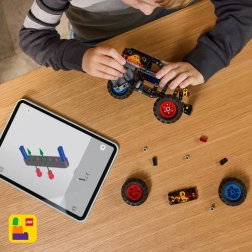 Die robuste Konstruktion mit typischen LEGO Technic Elementen hilft Kindern, mechanische Prinzipien zu verstehen und fördert die Kreativität. Mit der LEGO Builder App können junge Baumeister eine interaktive 3D-Anleitung nutzen, das Modell drehen, Details heranzoomen und Schritt für Schritt bequem bauen.